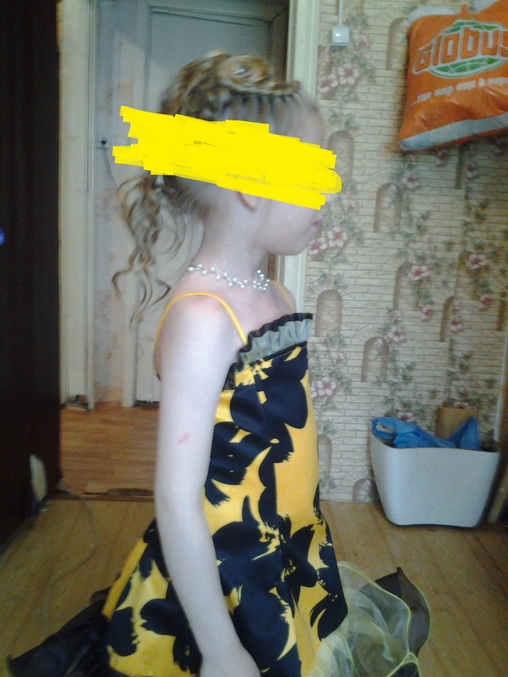 В прошлом году делала прическу девочке в желтом с черным, попробую найти фото. Правда крой другой.