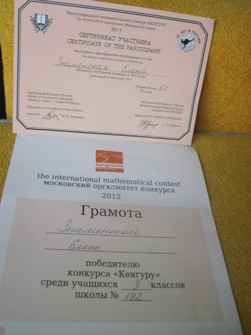 Здравствуй школа (начальная 1-4 классы)Ну, во-первых у нас грамота. За 1 место в школьной Олимпиаде по математике