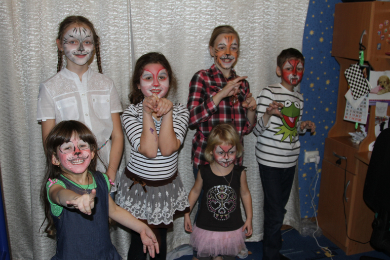 И ещё аквагрим. Дети все дружно выбрали семейство кошачьих)