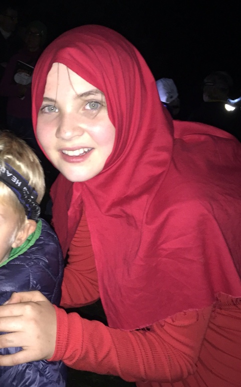 Еще пара минут в пути и к нам подбежала девочка в красном платке...