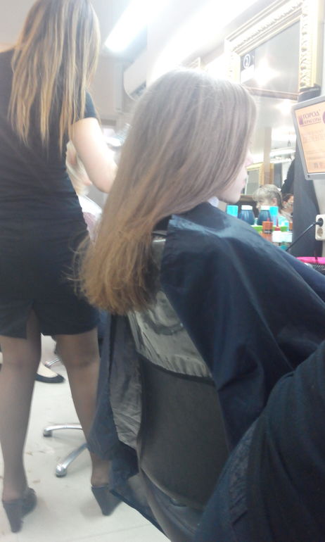 Пошли ровнять концы,ииии...я дала мастеру добро на отрезание "лишнего". Ровняем раз в 3-4 мес снимали 5-7 см, сейчас в районе 25 см сняли. Жалеем? Нисколечки. Дочка целый день гладит их,приговаривает как здорово,сама завязывает хвостик,расчесывает без проблем.А волосы...волосы отрастут.Честно надоело на концах видеть паклю.
