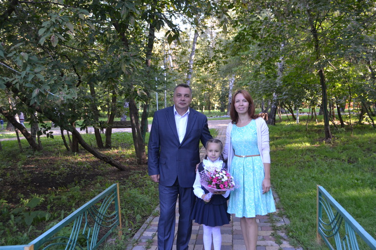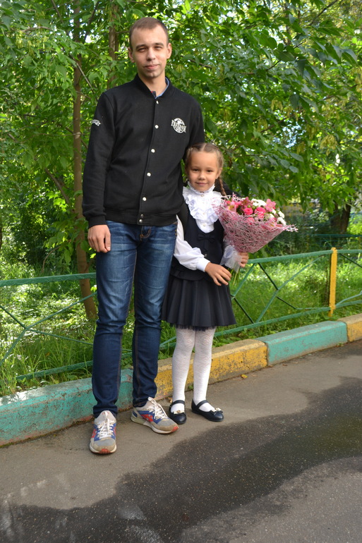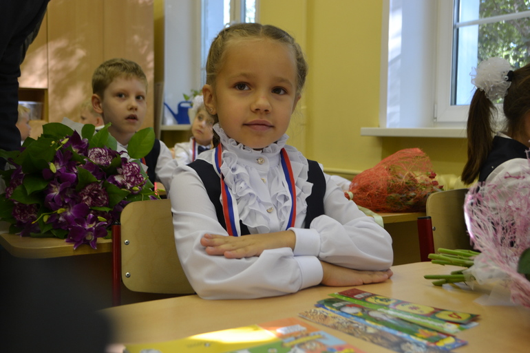 С подружками! попали в разные классы, думала разревется , но нет, на переменках встречаются..