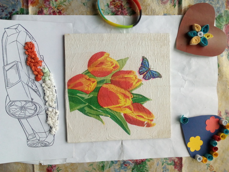 Поделки принес и с ним мальчишки с его комнаты прибежали) Посмотрели на нас и обратно побежали.