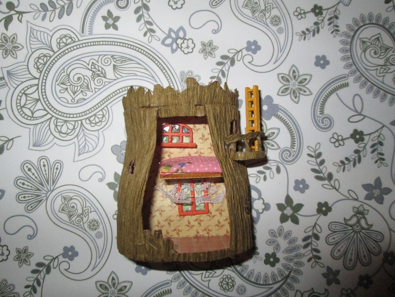 Это собранный из бумажных и деревянных деталей домик, ещё совсем пустой.
