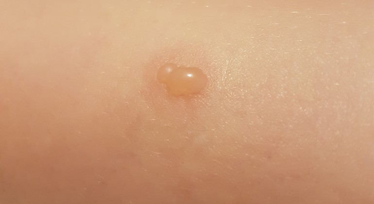 Волдыри на голенях.. всего два..по одному на ногу...колготки новые,из упаковки... и забыла постирать их... Думаю ,может из за этого...?