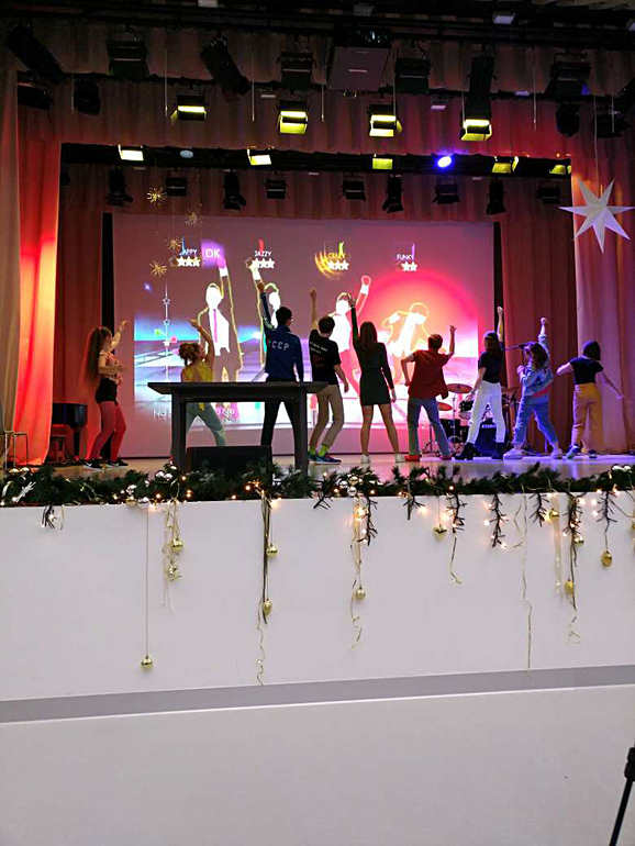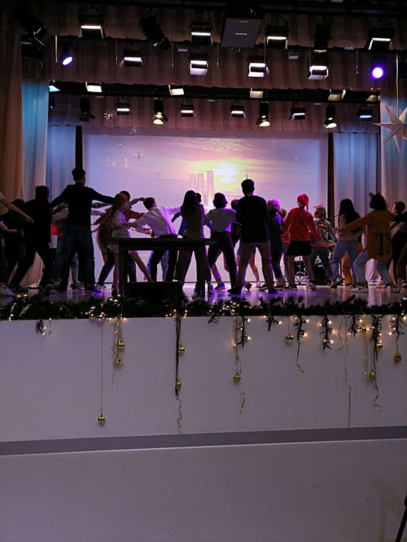 После ярмарки перекусили купленными на ней печеньками и уселись смотреть концерт. Часть выступающих задерживалась (их в этот день возили в Большой на Щелкунчика) и, чтоб зрители не скучали в ожидании, устроили танцульки.