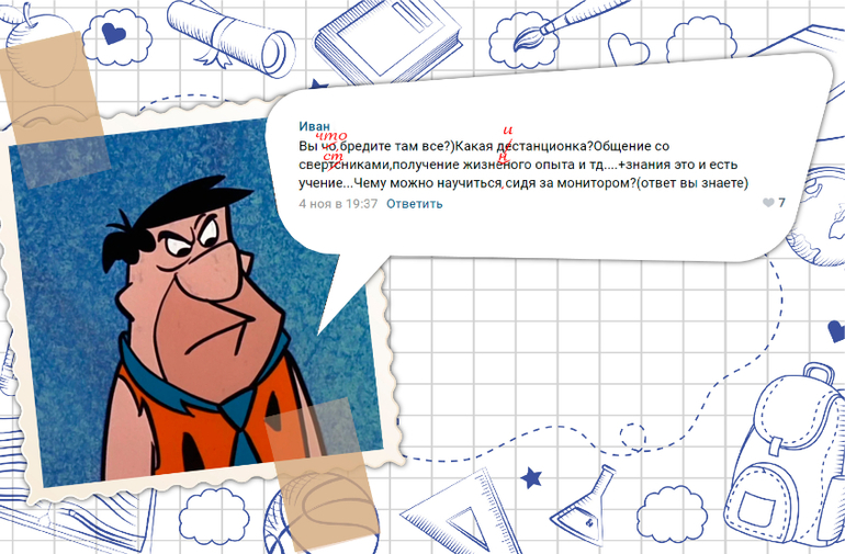 Средняя (5-9 классы)На развлекательном ресурсе нашла подборку комментариев людей о дистанционке.