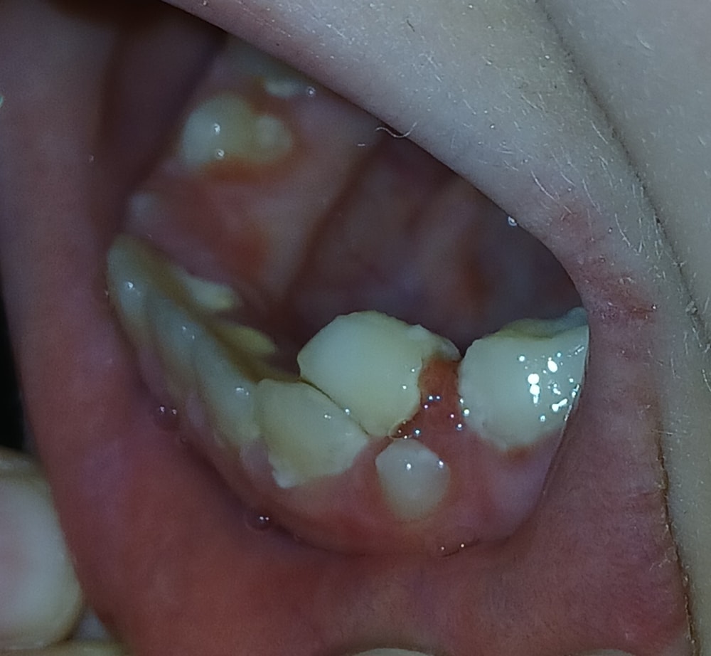 ЗдоровьеЗдравствуйте. У ребенка возле шатающегося зуба вырос новый, а этот не выпал. 4 дня качает сам, прогресс хороший есть, но зуб висит и не отпадает. Часть вытянутой десны входит внутрь зуба и он висит так. Прикрепляю фото. К хирургу записаться можно только на через 2 недели. Зубы так и должны выпадать обычно или тут что-то не так? Может зуб вообще на нерве висит? Не может такое быть? Кажется, что зуб не корнем держится, а висит на вытянутом куске десны.