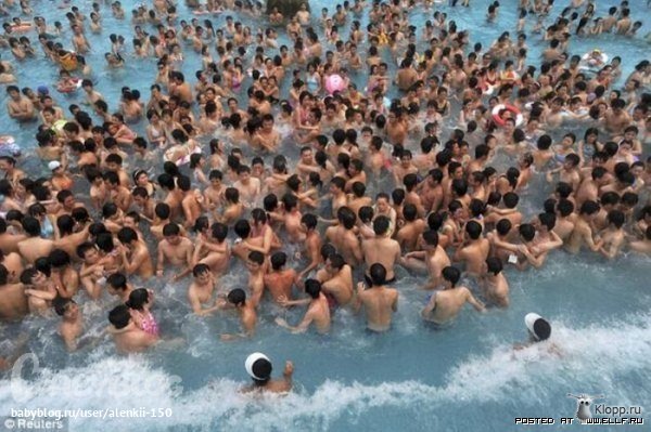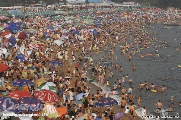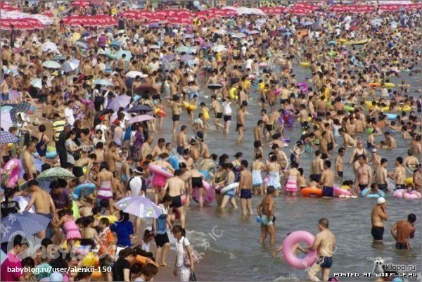 Китайцы устали от жары и отправились на пляж. Но как можно купаться, когда население в стране 1,34 миллиарда человек? Китайцы, как всегда, нашли способ.