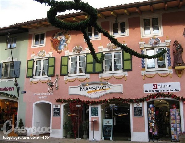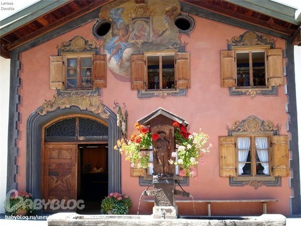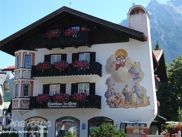 Чудесные расписные домики баварского городка Миттенвальд. Миттевальд расположен в Баварии, вблизи границы с Австрией, на высоте около 1000 метров. Этот лыжный курорт знаменит не только сказочной красотой природы, опасными трассами, но и музыкальными традициями, а также "воздушной живописью".