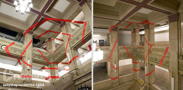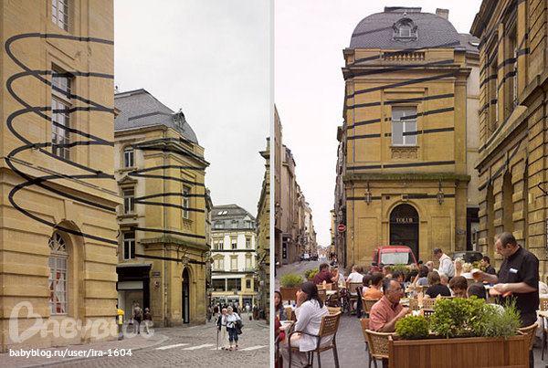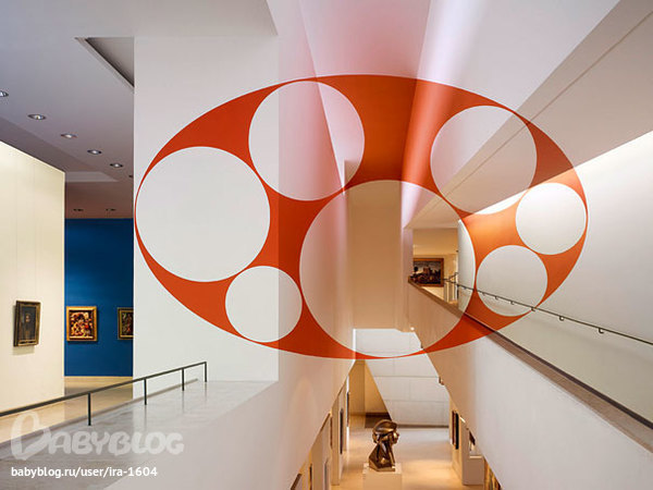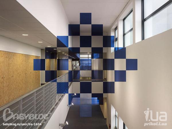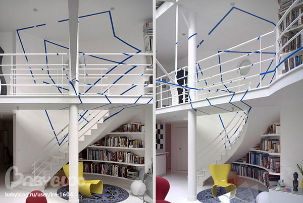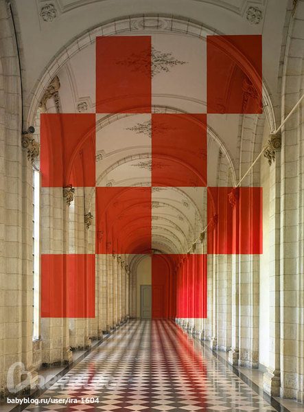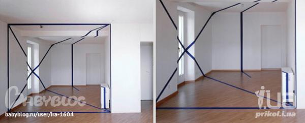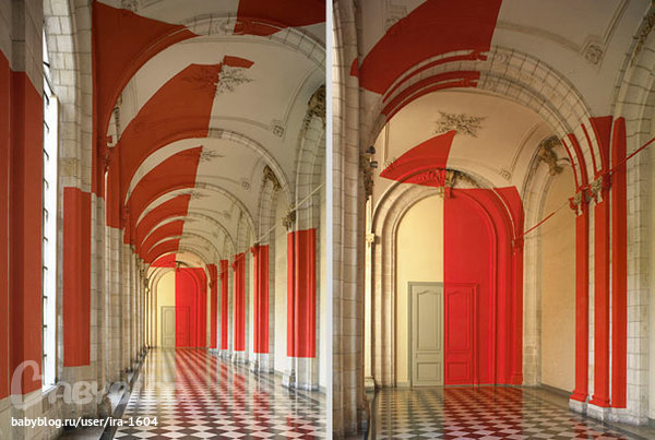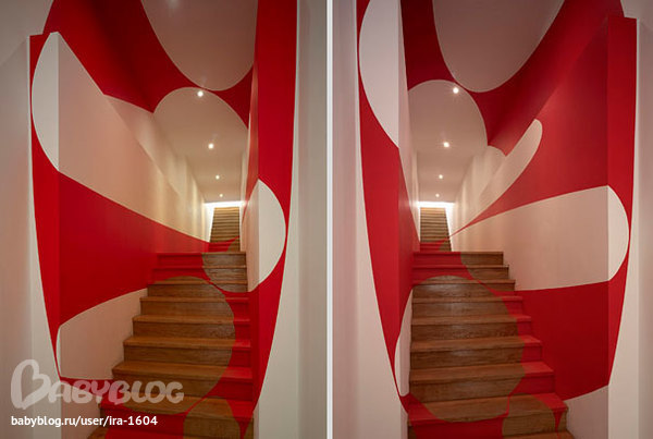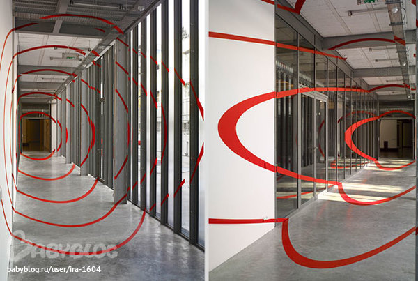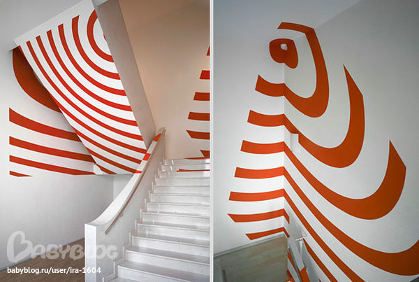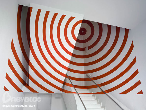 Это интересно!Швейцарский художник Феличе Варини (Felice Varini) создает в интерьере объемные геометрические картины, являющиеся лишь оптической иллюзией.Феличе Варини родился в 1952 году в Швейцарии, в настоящее время проживает и творит в Париже, создавая произведения искусства по принципу анаморфоз. Анаморфозом называют преднамеренно искаженное изображение, которое принимает правильный вид лишь рассматриваемое с определенной точки.Эта техника широко используется мастерами 3D живописи на асфальте. А Феличе Варини применил ее в интерьере и архитектуре. Художник своими проектами отрицает перспективу, превращая ломаные линии в симметричные фигуры, гармонично вписанные в коридоры, здания или даже целые улицы. Правда, увидеть красоту и волшебство можно лишь с определенной точки обзора.