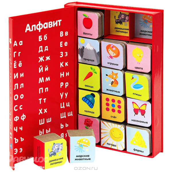 Видели ли вы ее вживую? Кажется что книга более информативна, чем кубики. Т.к. на развороте по 10 картинок на определенную тему и вопросики. А в кубиких, в каждой книге по 5 картинок, да? Т.е. на одной стороне разворота картинка, на другой написано слово. Верно? Но в кубиких 15 разных тем. Вот думаю... может поможите сравнить и выбрать?
