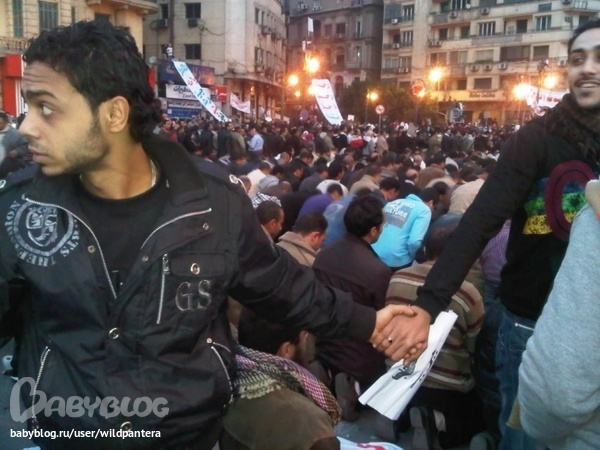Христиане защищают мусульман во время молитвы. Египет, 2011 год.