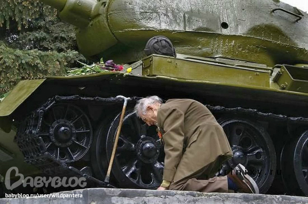 Ветеран около танка т34-85, на котором он воевал во время Великой Отечественной Войны.