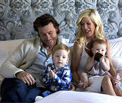 Тори Спеллинг - американская киноактриса, дочь знаменитого телепродюсера и кинорежиссера Аарона Спеллинга, 36 лет. Стала известна благодаря сериалу Беверли-Хиллз, 90210, где играла роль Донны Мартин. Замужем за актером Дином МакДермотом, с которым познакомилась на съемках фильма Mind Over Murder, воспитывает двоих детей, сына Лиама и дочь Стеллу. Дин МакДермот - американский киноактер, 43 года. МакДермот наиболее известен ролью в сериале Строго на юг, играл также в фильме Открытый простор с Кевином Костнером. С 2007 года снимается вместе со своей женой Тори Спеллинг в собственном реалити-шоу Tori & Dean: Inn Love и Tori & Dean: Home Sweet Hollywood. После 12 лет брака ушел от первой жены, с которой воспитывал двоих детей (одного ребенка они удочерили) к Тори Спеллинг, на которой он женился и завел еще двоих детей. Дом, в котором Тори и Дин живут со своими детьми, находится в Лос Анджелесе, в районе Westwood на 1955 Thayer Avenue.