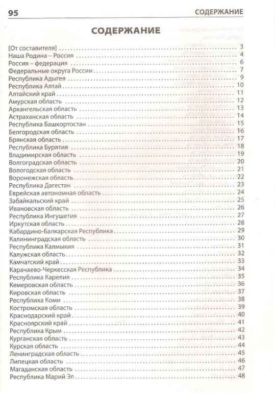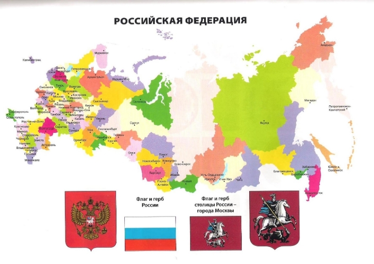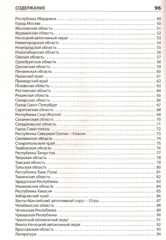 В книге даны общие сведения о нашей стране и общие данные о каждом субъекте России. Страница на субъект, дана политико-административная карта России и изображение гербов и флагов каждого субъекта.
