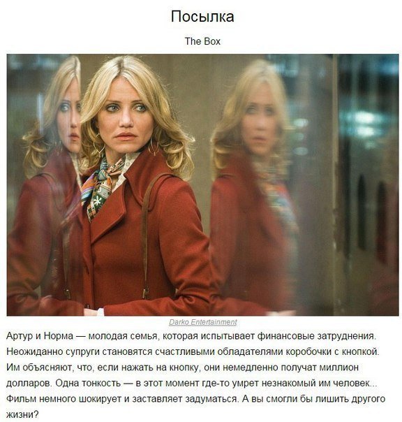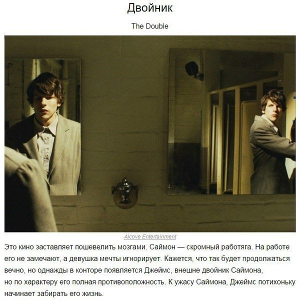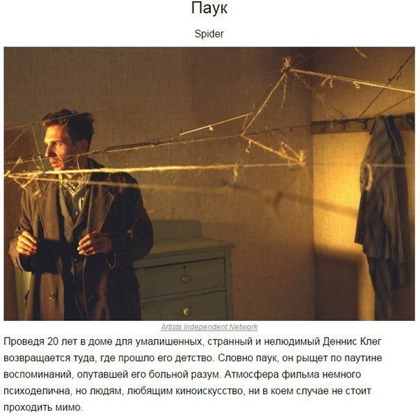 Отличный список. Беру на заметку, спасибо. Смотрела Машинист, Донни Дарко, Двойник и Посылка. Первые три достойные, в последнем хороша лишь идея.