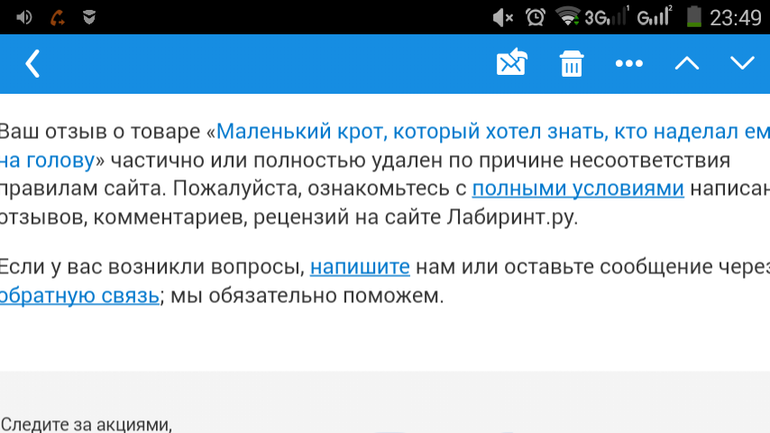 Это уже бородатая история. По моему даже на бб в детских книгах ее обсуждали. Суть в том,что во всей книге изучаются как бы,в игровой форме экскременты животных. И такой подтекст еще психологический, типа Крот ищет кто ему на голову какнул, и в конце сам кому-то,кто обидчик, гадит на голову. Мнения диаметрально противоположные, кто-то ничего страшного не видит, кто-то наоборот.У нас в стране книга вызвала больший общественный резонанс, чем за бугром. Оно и понятно - у них юмор ниже плинтуса поощряется с пеленой. А может лабиринт просто хочет чтобы было больше продаж, раз такой отзыв удалили?