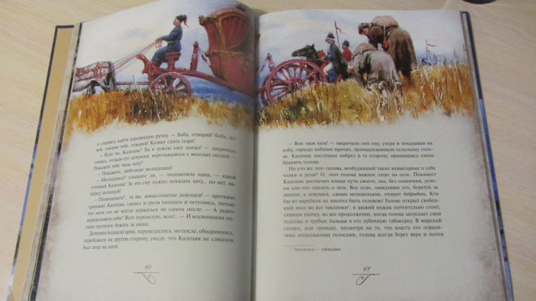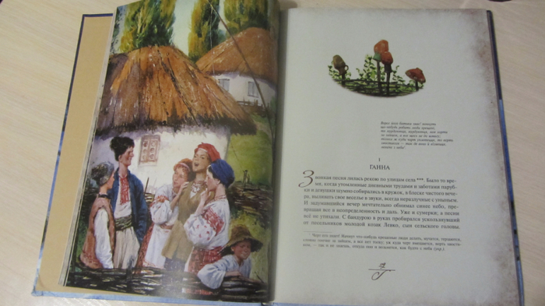 Издательство Махаон, формат большой (А4), художник Олег Коминарец. Страницы мелованные, тонированные. Иллюстраций много и небольших, и на всю страницу, и на разворот. Очень хорошо передан колорит украинского хуторка.