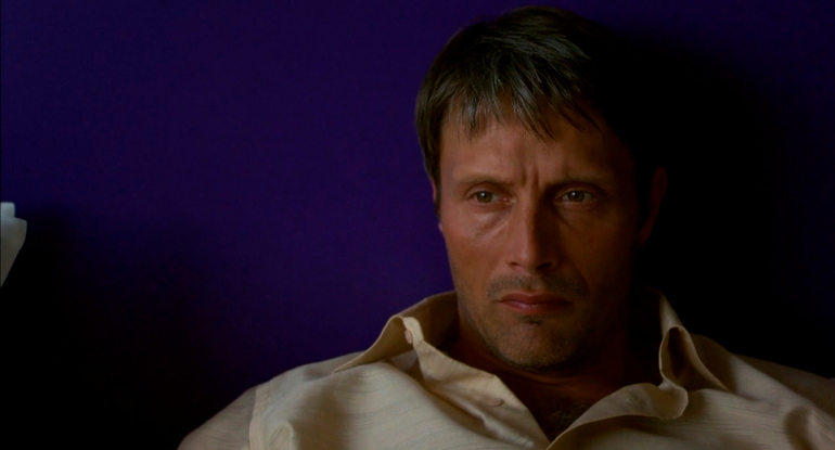 Я смотрела этот фильм исключительно из-за Мадса. Как же его любит камера. Как он сдержанно красив тут. Крупные расфокусированные планы меня покорили. Тот, кто это снимал, тоже его любит. Это видно сразу.