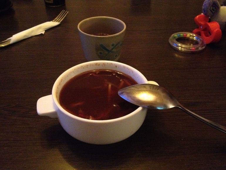 Питание мамыКитайский острый суп Латэн с фунчезой, побегами бамбука, свининой, тофу и какими-то грибами :-) До этого еще были роллы. Отмечали мой день рождения :-)