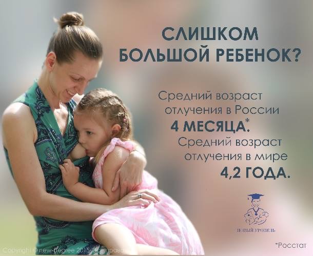Мне очень нравится картинка:) И мне кажется девочка примерно ровесница моим мальчикам. Но цифры да, немного смущают. Ощущение, что Россию сильно принизили. У меня много знакомых мамочек и никто меньше года не кормил, большинство больше.И мировую цифру тоже.. слукавили в общем. Думаю надо исправить цифры немного и можно смело вдохновлять мам молодых. Я за кормление как можно дольше, но иногда устаю от ночных прикладываний и тогда посещают мысли форсировать события. А чуть позже опять возвращаюсь к мысли.. они ещё не готовы. Кто-то написал, что девочке пора буквы учить.. У меня один сыночек знает алфавит и считает до пяти и это не мешает ему хотеть сисю. К сожалению все подобные посты в большинстве своём из "фи-фи" и споров с модераторами или защищающими долгокормление мамами. А хотелось бы, чтоб они были наполнены личными положительный примерами.. .