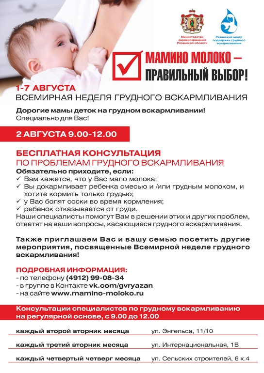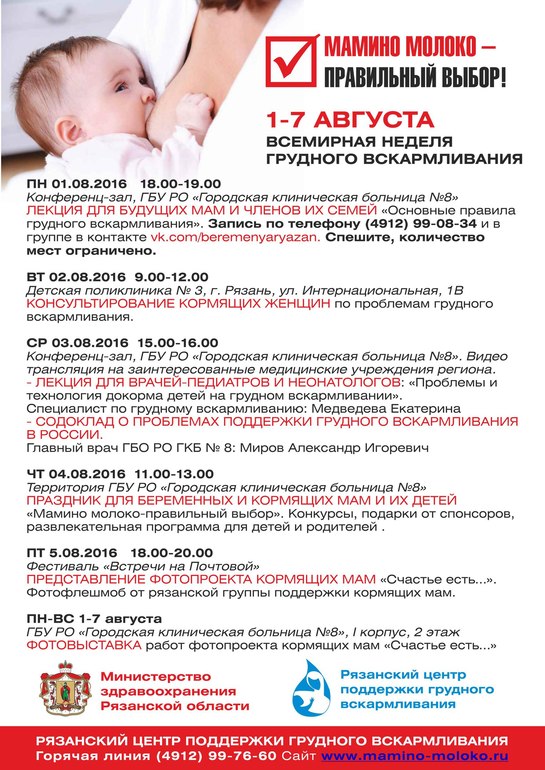 Специально для вас , будущие родители и кормящие мамы , наши специалисты Рязанского центра поддержки грудного вскармливания проведут несколько различных мероприятий.