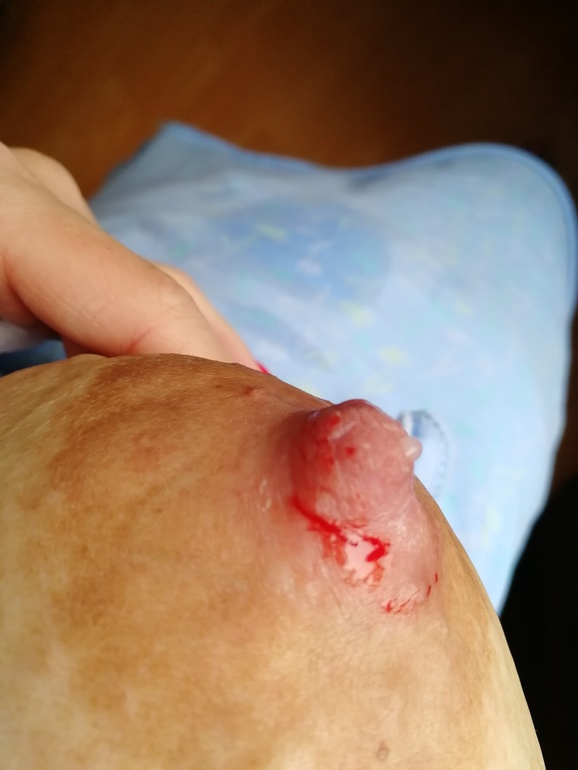 Я вас понимаю((( Тогда сцеживайте эту грудь, прям намажьте толстым слоем мази и силиконовой насадкой, это будет не так травматично, как младенец))) Иначе у вас появится стойкое отторжение гв из-за боли! Даже не у вас, а у вашего тела)) Ребёнку молоко с кровью тоже не очень нужно, так что заживите эту грудь сначала однозначно!))