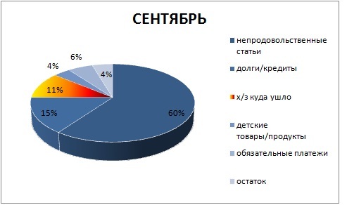 Марафон по учету расходовДорогие участницы, давайте подведем с вами итоги сентября месяца.Составляем вот примерно такую диаграмму: