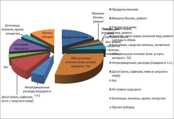 Все складываем, берем процент по каждой статье. Рисуем диаграмму или в экселе или от руки.