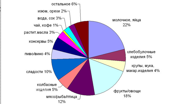 Неужели мы столько едим? Первая цифра - за месяц. А в скобочках - за день. Вес прдуктов указан на всю семью. Едоков четверо. Если двоих детей посчитать за одного взрослого, то трое взрослых.