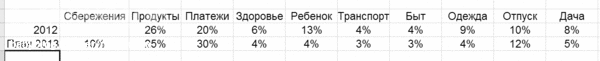 Категории - это фонды, планируется с каждого дохода расспределять деньги по фондах, конечно иногда будем при необходимости одалживать у других фондов на здоровье и может еще какие-то траты... Возможно через пару месяцев процентные ставки немного изменю (скорее всего на ребенка). А еще, на платежи (коммунальные, телефоны и т.д.) 30% исходя из минимального дохода, т.е. будет больше доход - остаток от платежей расспределяю по другим фондам или перебрасываем на минусовые расстратные фонды