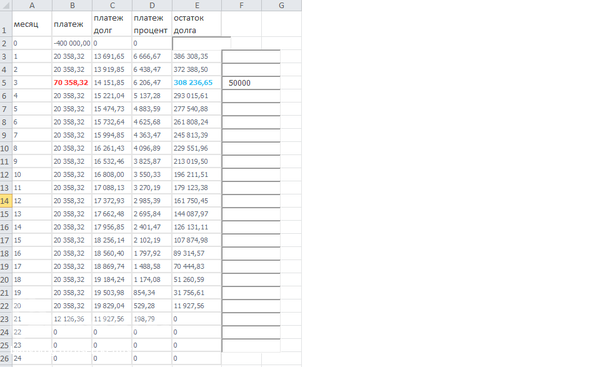 Допустим, взяли кредит 400тыс. с выплатой 20тыс в месяц под 20%. Что выгодней - досрочно гасить за счет сокращения срока или суммы? допустим досрочное погашение с такой же суммой - 20тыс.