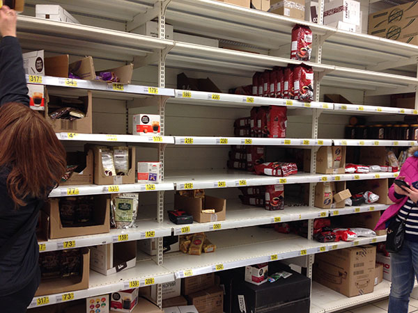 Полки с кофе (то же самое в крупах и макаронах), в остальных отделах все нормально: