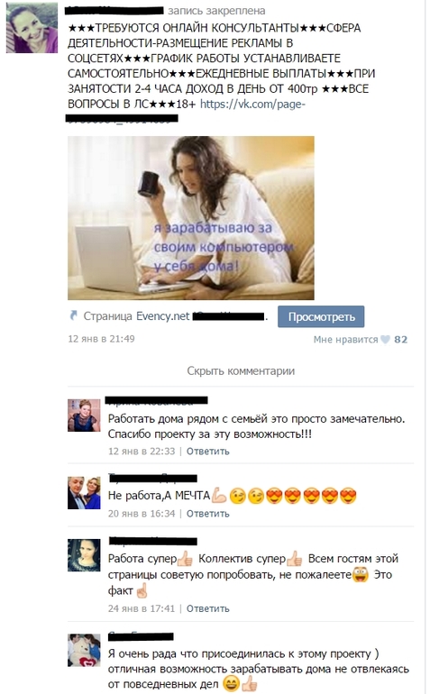 У самой Лены и у её друзей страницы пестрили яркими призывами заработать с помощью этого проекта, а все комментарии - восхвалением идеи, хвастовством заработка и молитвами с благодарностями создателю этой конторы.
