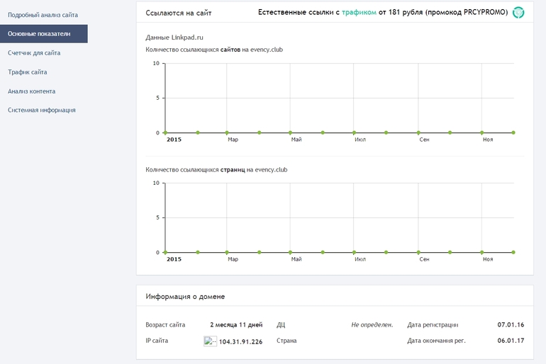 Отправляем этот сайт на анализ... Анализ выдал, что домен "evency" существует 2 месяца 11 дней. В Яндекс и Google каталогах не зарегистрирован, при этом вообще не имеет ТиЦ и PR, количество ссылающихся сайтов - 0. Примерное количество посетителей в день - 40.
