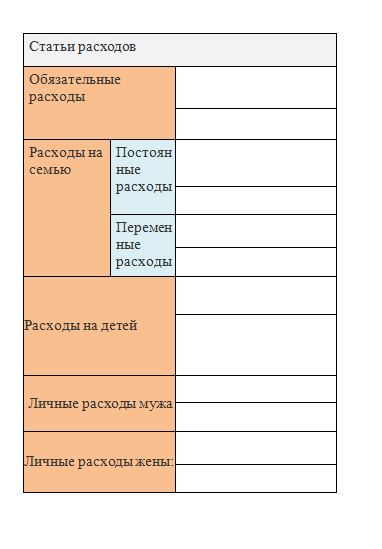 Теперь необходимо выделить ключевые статьи расходов семейного бюджета по каждой из групп: