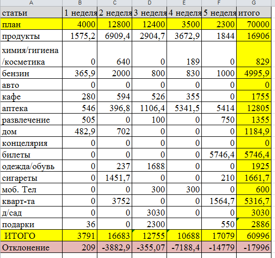 Расходы записывать продолжаю в тетрадь и дублировать в экселе и телефоне.