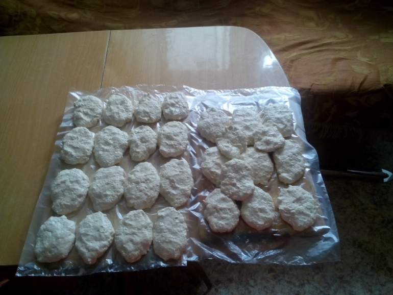 2 кг котлет,1,5 кг сырников.Далее котлеты по мере необходимости готовлю в пароварке,или на сковороде,или в духовке.Сырники к чаю на сковороде.Времени это занимает около 20 минут,моего присутствия практически не требуется.