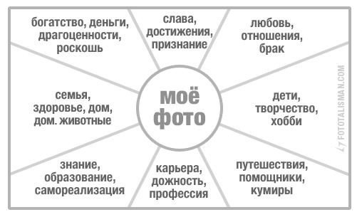 Берется ватман и располагаете на нем желания, согласно схеме.
