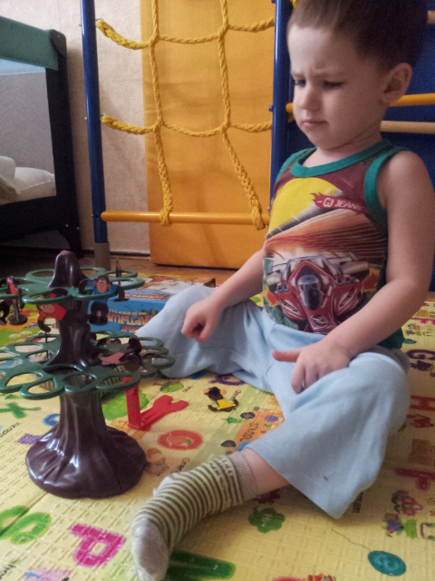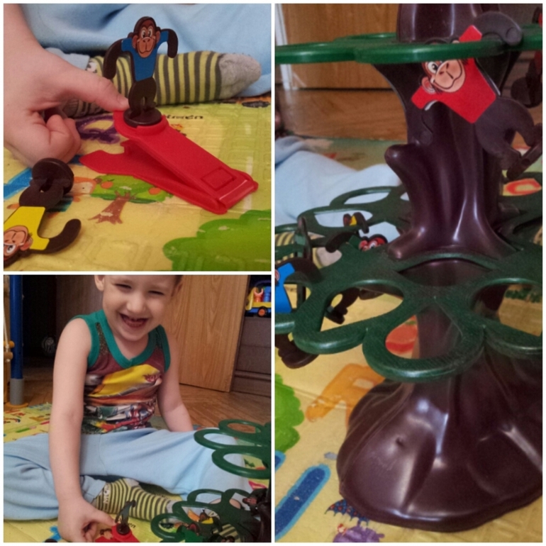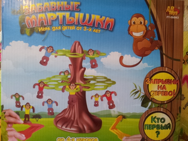 Игрушки для детей 4го годаВ нашей игровой комнате появилась очень весёлая настольная игра "Забавные мартышки" . Понравилась всем и папе и ребёнку и мой глаз радовался когда я наблюдала за их игрой - хохот стоял звонкий)))Мартышки прыгают - летают,то попадают на дерево ,то нет,но счастья от этого не уменьшается)))Самое забавное то что у ребёнка получается лучше чем у папы))Игра стоит тех денег которые я за нее заплатила))) Хотелось бы чтобы дерево для мартышек было побольше - но и этого достаточно. Игра рассчитана на 4 человек-максимум,но играем мы в основном в двоём с ребёнком.Возраст для игры хорош от 3 лет. Материал пластик,у меня игрушка выполнена аккуратно - без погрехов производства(брака) . Приобретала тут | My-shop.ru Смотрите фото)