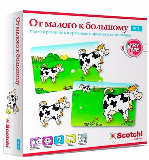 2. Следующее приобретение стала игра От малого к большому. Учимся сравнивать и различать предметы по величине. 2+