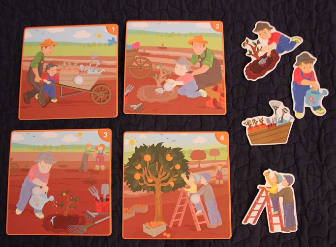 С помощью данной игры ребенок приобретает навыки в выполнении последовательных действий. Например, вначале нужно посадить дерево, потом поливать его, и только потом можно будет собрать яблоки.