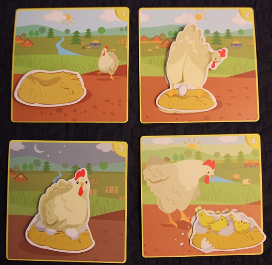 Истории достаточно простые, несложные, поэтому можно приобретать и раньше. Игру купили недавно, поэтому освоили только одну простую историю про то, как курочка снесла яички и потом высиживала яйца до появления маленьких цыплят.