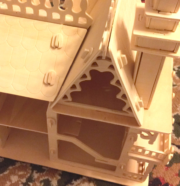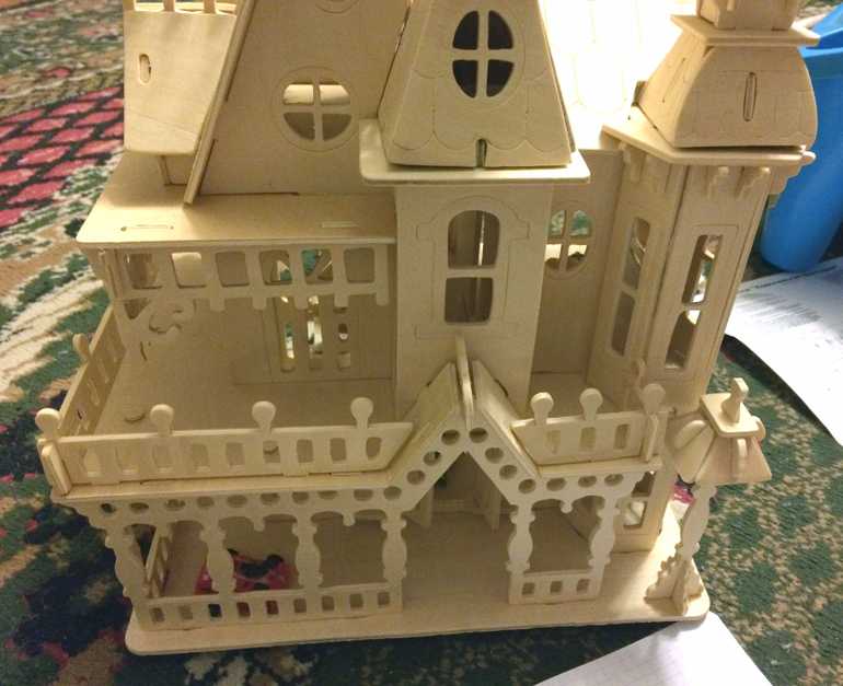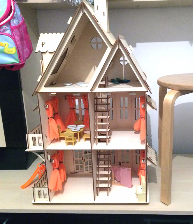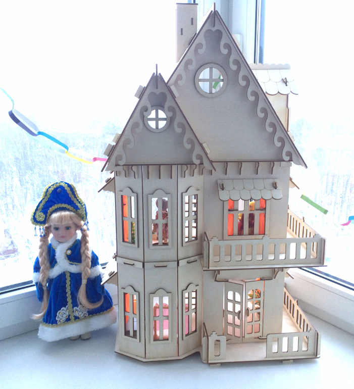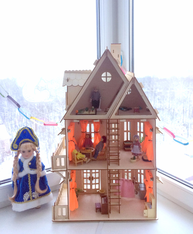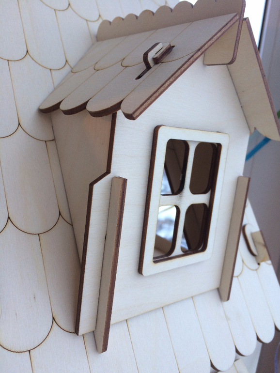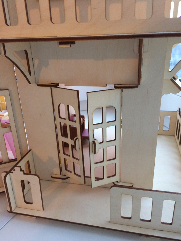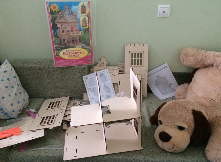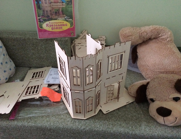 И хотелось бы мне посмотреть на того, кто не ломая этот домик сможет посадить занозу им, при лазерной резке-то и приличной шлифовке. Я как бы собирала, если что, и все детали трогала, так что не знаю, о чем вы. 3 месяца - полет отличный у двух детей, два разных дома. Девочкам, конечно, не 2 года)))