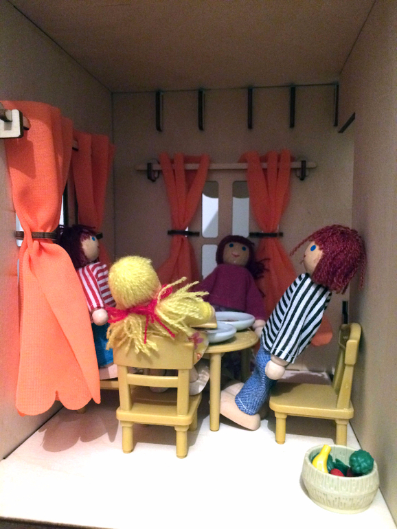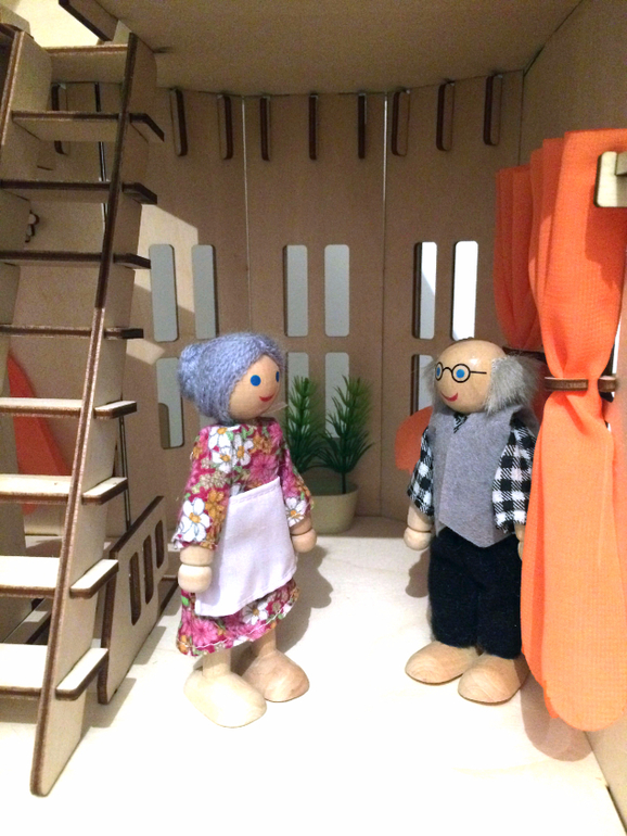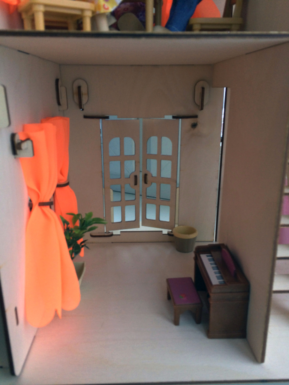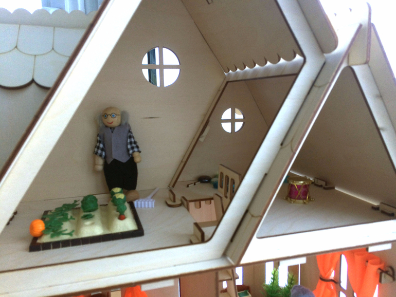 В итоге, все равно маленький домик было страшно отдавать на игру - вероятность посадить занозу все же есть. Пришлось объяснить, почему с этим домиком надо играть очень аккуратно. Собственно, что, наверное, и погасило интерес через пару дней.