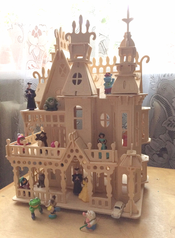 Еще про качество - собирался мамой, то есть мной, 1 января (!!!) после долгих уговоров дочкой (о, как я отбрыкивалась, как хотелось отдохнуть), и готов был всего за 3 подхода по полчаса (на чай, чай перерывы, а не на то, что вы подумали). По сравнению с домиком, купленным мной несколько лет назад в Олимпийском (другая фирма, убраны на антресоли еще до рождения дочки, а покупался себе как большой 3D-пазл) просто небо и земля! По инструкции можно легко понять, что надо сделать, даже 1 января! А в другом я неделю колупалась, проклиная все и вся, сидя с напильником, клеем и идиотской инструкцией микроскопического размера, в общем, все для людей (а и да, габариты там - для киндеров максимум, см.фото в конце поста).