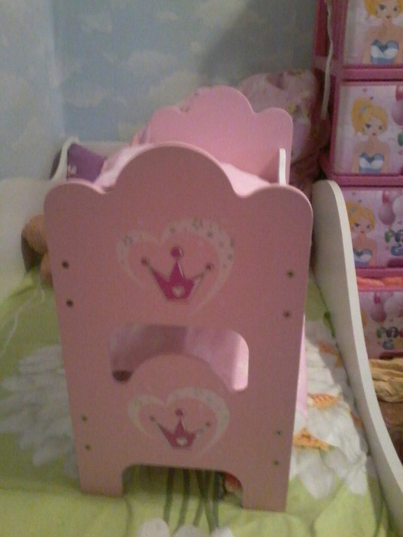 Двухъярусная кроватка. Почему-то сразу решилось, что одна из кроваток должна быть именно двухъярусная. Цены кусачие, откровенно говоря. А вот эта красавица нашлась всего за 1076 руб. Я считаю , что это очень удачное приобретение. Кровать красивая, два спальных места, прочная, дерево, собирается легко ( у меня сын 11 лет собирал), длина 50 см. В комплекте два постельных белья. Не вау, но вполне хорошие.