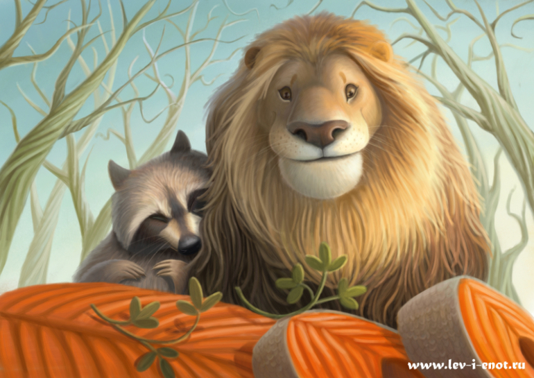 Лев и Енот - главные сказочники леса средней полосы. Сказки и смешные истории из жизни эмигранта из саванны и коренного жителя леса. О причинах львиной эмиграции и коварстве полосатого хвоста можно прочитать .