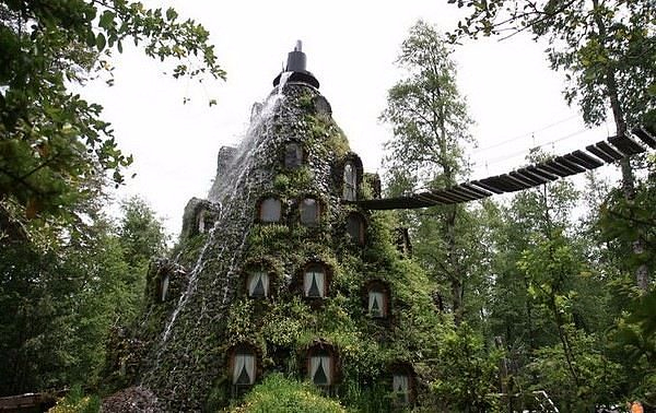 В одном из диких уголков на севере Патагонии, в природном парке Huilo-Huilo есть гостиница Magic Mountain Lodge. И гостиница эта имеет весьма сказочный внешний вид.